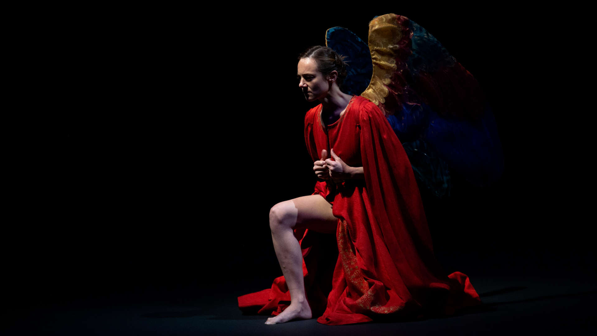 C’est ainsi que 3 annonciations s’annonce. Trois monologues à venir. Trois prises de parole performative rejoignant ce fil conducteur de toute la démarche “rambertienne” creusant la question du langage dans ses deux extrémités, sa puissance d’amour et de violence, sa capacité à dire le monde autant que son impuissance. Ce seront trois adresses au public qui passeront par l’emploi du “tu”, les trois femmes incarnant chacune leur tour l’ange Gabriel. Dans ce dispositif, le public devient le dépositaire de la révélation, il est en position de recevoir, dans l’état d’écoute de la Vierge. Ces voix seront à la fois proches des voix intérieures comme lorsqu’on s’adresse à soi-même, tout en étant projetées vers l’extérieur, l’altérité, la communion des spectateurs. La parole sera donc réflexive, tournée en dedans, et à l’attention du monde, tournée en dehors.