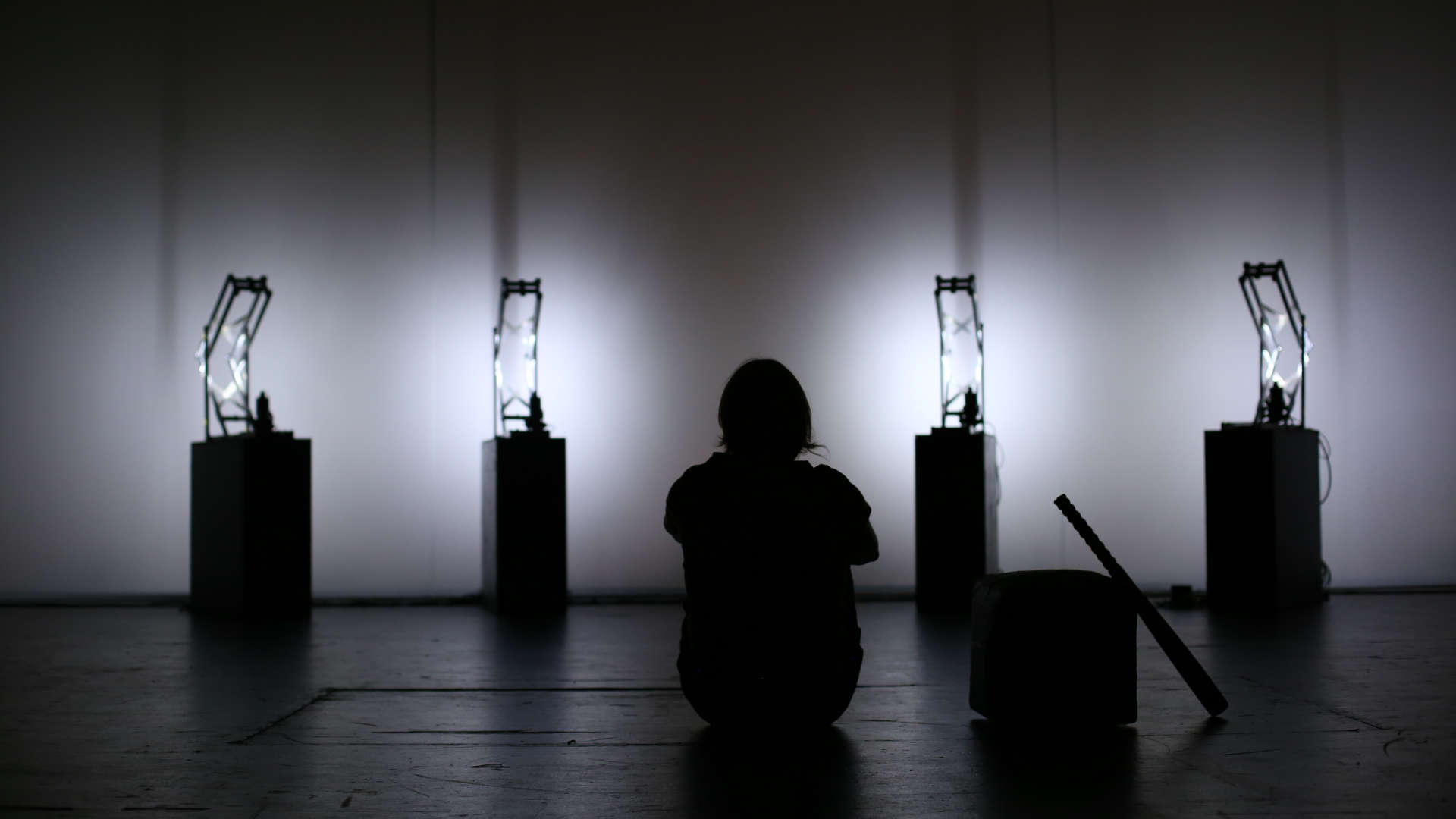 Dans Con grazia, Martin Messier et Anne Thériault sonnent le glas de la matière : une destruction méticuleuse et performative dans l’ombre de laquelle grondent des machines, prêtes à exécuter le chaos. Musique du fracas, les marteleurs s’appliquent à la tâche suivant une partition précise et font voler en éclats des objets choisis pour leur harmonie sphérique. Une série de flashs hallucinés s’additionnent : on perçoit un gant, une massue, un geste. Les mains pensent et frappent. Manipulées par les performeurs, les sources de lumière impriment sur la rétine de fragiles instants de beauté. Messier et Thériault pulvérisent avec grâce et torturent la matière dans une hécatombe musicale et rythmique intensément sensorielle. Une ode inquiétante à l’agonie du monde matériel.