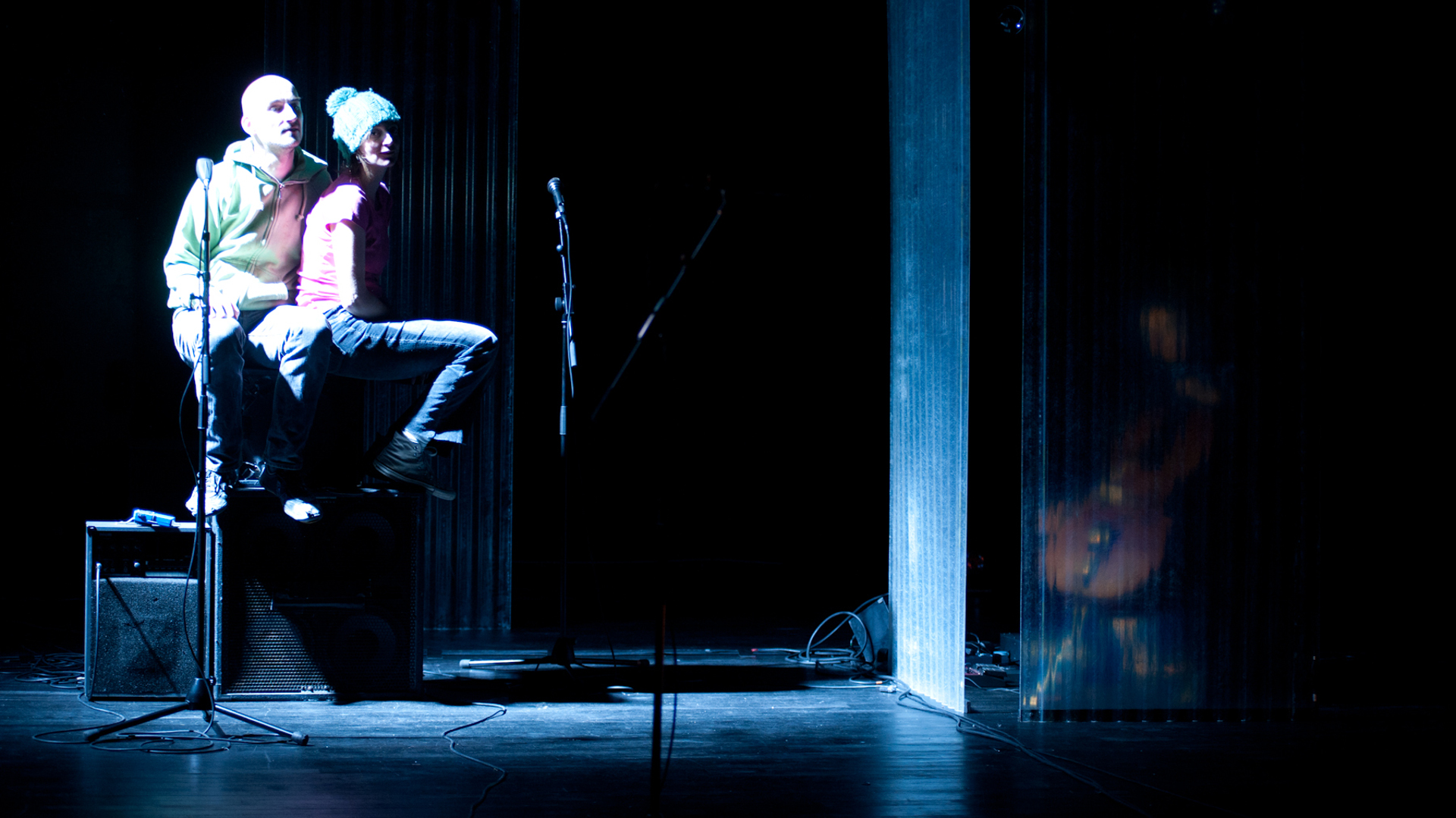 Magali Montier, Augustin Bécard et le collectif Hund nous entraînent dans une expérience scénique forte et singulière. Composé de plasticiens et de comédiens également musiciens, le collectif Hund élabore des formes théâtrales qui utilisent le son comme un générateur d’émotions. Les artistes travaillent avec des micros, des capteurs, des machines mais aussi des instruments de musique pour une plongée au cœur du son qui donne à voir et à entendre la force du texte sans flirter avec le mélodrame. A la recherche d’une qualité d’écoute basée sur l’étrangeté et la poésie, ils proposent avec Kiwi, de l’auteur québécois Daniel Danis, un voyage sensible à partir d’une réalité prégnante. Le texte aborde de front la noirceur de notre société contemporaine. Kiwi est l’histoire d’un groupe d’enfants errants, surveillés de près par la police d’une ville sur le point d’accueillir les Jeux olympiques. La municipalité décide de vider tous les bidonvilles de ses habitants. Kiwi et Litchi, deux adolescents formant à eux deux une famille de substitution, s’inventent une micro-société avec ses stratégies d’entraide et de survie. Kiwi nous place face aux inégalités sociales et affectives du quotidien, en suggérant une réflexion sur les travers d’un capitalisme et d’un libéralisme outranciers.