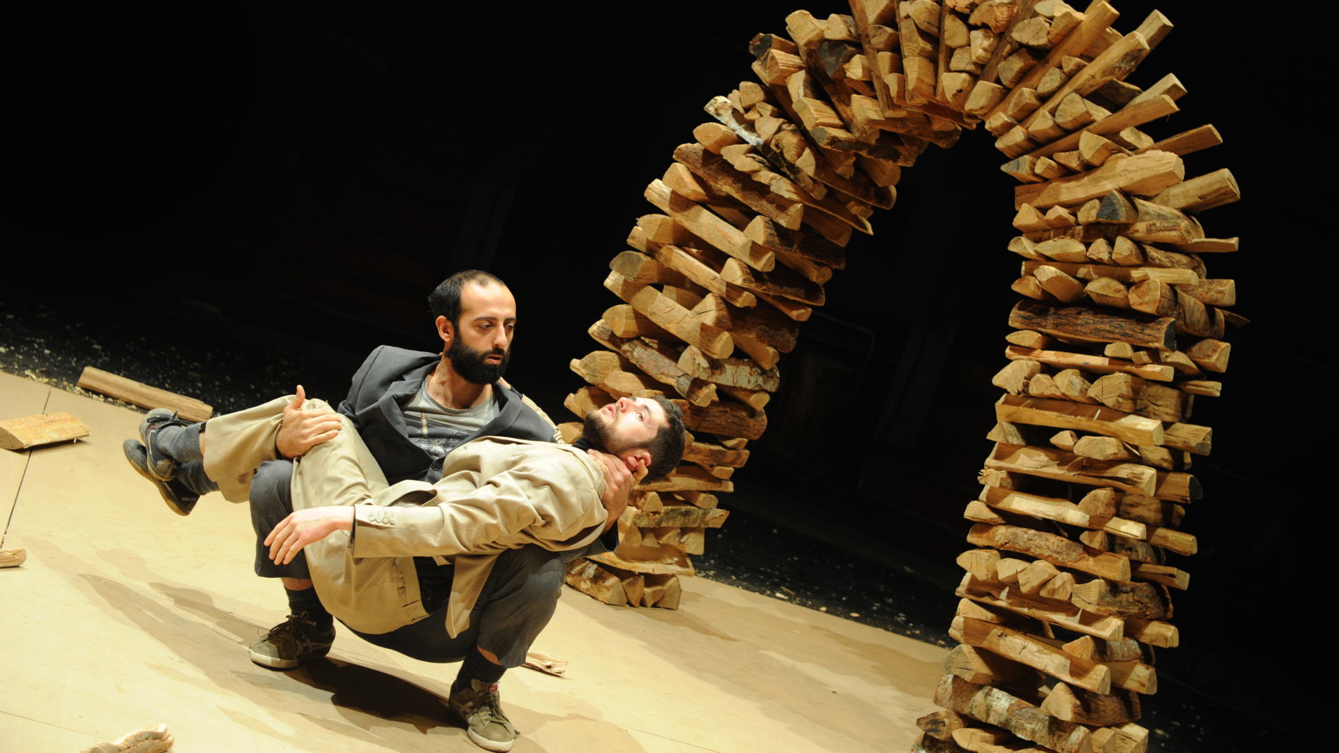 La Cosa est un ovni de scène pour quatre performeurs et 1600 bûches. Entre cirque, danse et nature Claudio Stellato