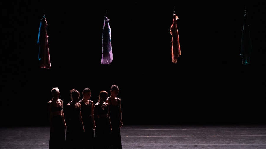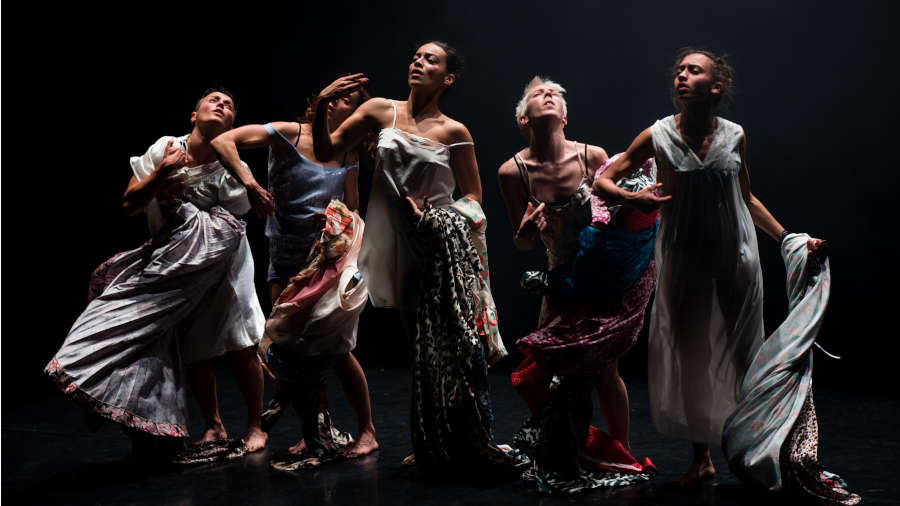 Sur scène, cinq femmes alignées et vêtues de robes colorées essuient leurs visages baignés de sanglots imaginaires. « Porteuses du chagrin et d’une communauté de destins féminins », comme l’affirme la chorégraphe et danseuse Leïla Ka, elles incarnent les douleurs endurées par les femmes à travers le monde.