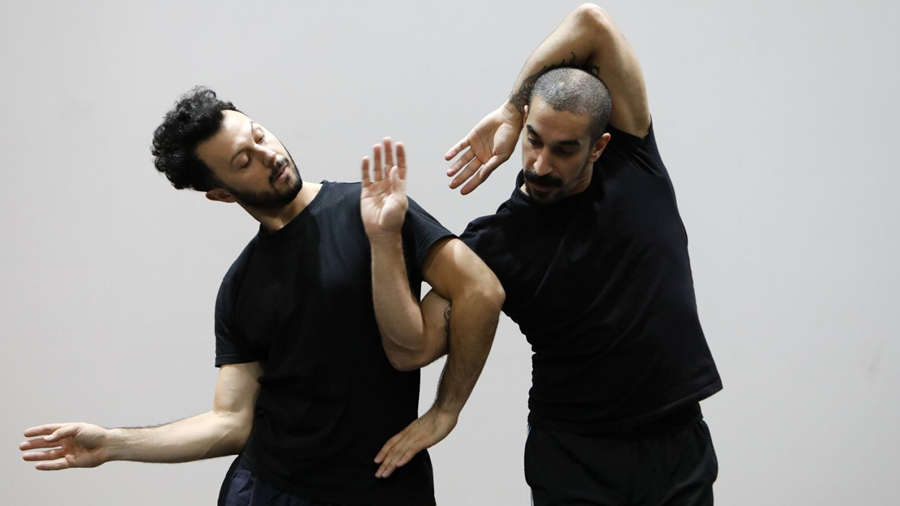 Neighbours s’inscrit dans le sillage d’un duo dansé par le performeur hors normes Rauf « RubberLegZ » Yasit et le danseur et chorégraphe contemporain Brigel Gjoka dans A Quiet Evening of Dance (2018), création dans laquelle William Forsythe tissait ensemble les enluminures de la danse baroque et les figures virtuoses du break. Cette nouvelle chorégraphie, dont la première partie est écrite avec la collaboration du maître, interroge l’héritage culturel des deux danseurs : traditions kurdes pour RubberLegZ et albanaises pour Brigel Gjoka. Le premier, artiste visuel, chorégraphe et danseur autodidacte, se définit comme « abstract b-boy » développant un style unique, mélange de flexibilité, de yoga, de danse contemporaine et de break. Interprète de formation classique, collaborateur régulier de William Forsythe, Brigel Gjoka joue de son expressivité et de son élégance pour insuffler à ce duo de haute technicité, un naturel inattendu. Neighbours s’énonce comme un dialogue entre deux artistes d’exception travaillant à la pointe de leurs disciplines. Ensemble, ils expérimentent et composent avec justesse et précision un pas de deux sublime et touchant qui exploite tour à tour leurs ancrages esthétiques et culturels, la singularité de leurs danses mais aussi, dans une théâtralité subtile mêlée d’humour, une relation humaine vive et sensible.