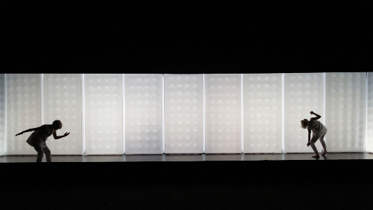 Les corps de deux danseuses se rapprochent et s’éloignent, se frôlent, transformant la nature de l’image, de l’unisson au décalage. Musique, bruissements des objets et des corps, métamorphose du geste et beauté de l’image, Stéréoscopia invite au plaisir du sensible et livre le spectateur aux délices de l’étrangeté.