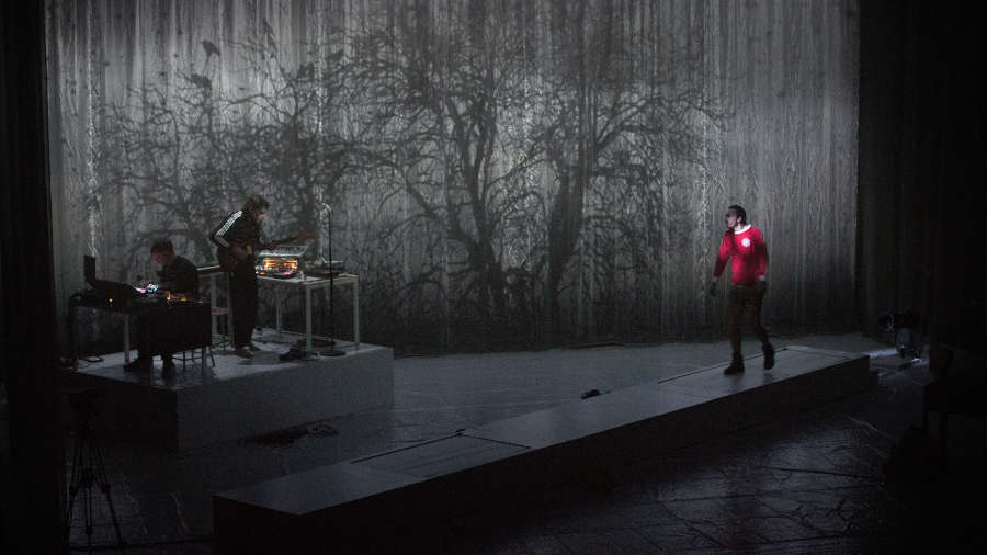 En novembre 1974, Werner Herzog quitte son appartement munichois afin de rejoindre à pied son amie Lotte Eisner, hospitalisée à Paris. Sur le chemin des glaces est le récit de cette marche conjuratoire. Le réalisateur chemine à travers des paysages austères et inhospitaliers, des sentiers boueux, des villages isolés. Écrit sur le vif tout au long de ces huit cents kilomètres, ce journal d’errance et d’illumination nous invite à suivre la quête d’un homme qui, à travers l’adversité, la solitude, les bouleversements intérieurs, trouve en lui le chemin d’une extase. Fasciné par la dramaturgie souterraine à l’œuvre dans le texte, Bruno Geslin déploie les mots d’Herzog dans un dispositif scénique immersif qui nous plonge à sa suite dans ces étendues glacées, plaines brumeuses dont l’atmosphère et les sons nous traversent. Marcheur infatigable lancé dans un espace mouvant comme un paysage mental, Clément Bertani incarne ce récit, secondé par le compositeur et comédien Guilhem Logerot, sorte de double fantomatique engagé avec lui dans ce troublant dérèglement du réel.