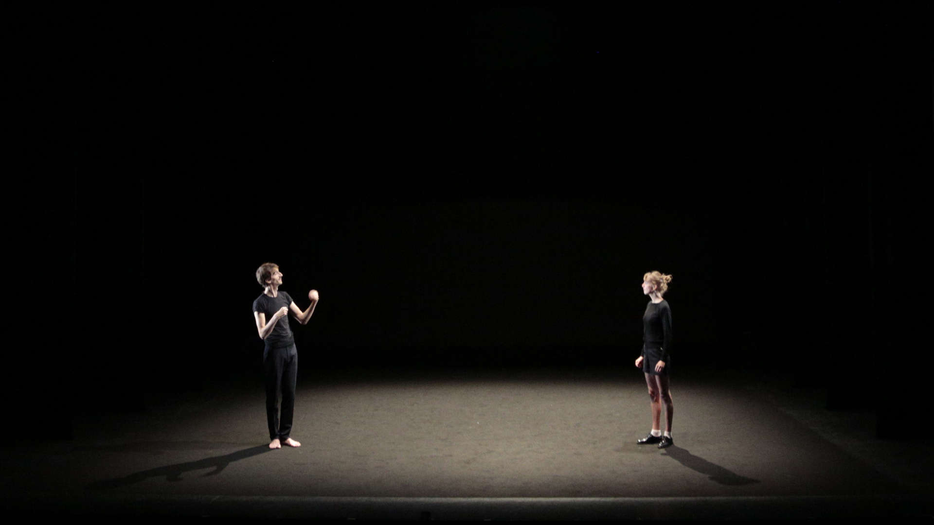 Ensemble Ensemble. Répétition, bégaiement, protophrase balbutiante, écho qui annonce la suite. Comme son titre simple et tautologique, la nouvelle création de Vincent Thomasset entraîne, sans prétention, les spectateurs dans un ballet de corps et de mots à la frontière du banal et du poétique, à l’interstice de l’absurde et du sensible. Pendant une courte heure, quatre corps, miroirs les uns des autres, dialoguent par mots et par gestes, évoquant les plus petits riens du quotidien, étalant en longueur les affres infimes qui parsèment nos relations, avec une acuité et une légèreté tout simplement réjouissantes. Sur scène, rien de superflu. Le sol vide, un écran vide au fond et des corps. Deux danseurs, un homme et une femme, sont contorsionnés en avant-scène, sous la lumière des projecteurs, tandis que derrière se détachent deux silhouettes dans la pénombre. Deux fois un homme et une femme. Deux fois un couple. Quand les danseurs prennent la parole, elle est empruntée, factice, elle ne colle pas avec leur corps. Ils se font ventriloquer par les deux silhouettes en fond de scène. Les danseurs dansent et les acteurs jouent. Les danseurs animent leur corps et leurs lèvres et de celles-ci sort la voix d’un autre couple. Le dialogue s’établit sur un autre terrain, celui du logos. Miroir faussement symétrique, les deux couples, ou plutôt, le couple démultiplié, s’engage dans un étrange quatuor. Le jeu spéculaire des regards circule entre les corps, rendant impossible la fixation d’un original et de son image. Qui parle de la voix ou du corps ? Impossible à dire. Les rôles se diluent les uns dans les autres. Cet étonnant couple de couple reste ensemble, ensemble mais distant. Aux uns la parole, aux autres la danse, et entre les deux, tout autour d’eux, la musique, entraînante, hypnotisante. Les percussions de clavecins secouent les cadres, interrompent les discussions et noient les corps ensemble. Dans ces instants musicaux, toutes les frontières s’étiolent. Reste une parade partagée, juste et touchante, guillerette aussi. Le texte de Thomasset, fait d’infinies variations autour de rien ou presque, surprend par sa sobriété et son souffle léger qui emporte souvent l’enthousiasme du public. Derrière l’anecdotique et l’anodin, perce toute une poésie du banal. À l’image de cette charmante séquence où les protagonistes s’adonnent à un jeu de leur cru : celui des « phrases qui mettent tout le monde d’accord ». Sorte d’exercice d’anti-poésie où les phrases doivent se faire le plus tautologique et inexpressive possible, simples énoncés factuels, mais où sourd, comme en négatif, une paradoxale poésie non dite. Avec cette nouvelle création, Vincent Thomasset opère une très équilibrée et délicate symbiose entre parole, danse et musique. Chaque élément s’installe et se déploie en toute simplicité, propose modestement sa poésie absurde et charme par sa légère élégance. Thomasset présente un théâtre de la parole sans artifice mais plein de ressources qui ne peut manquer de toucher.
