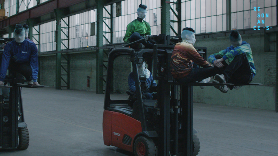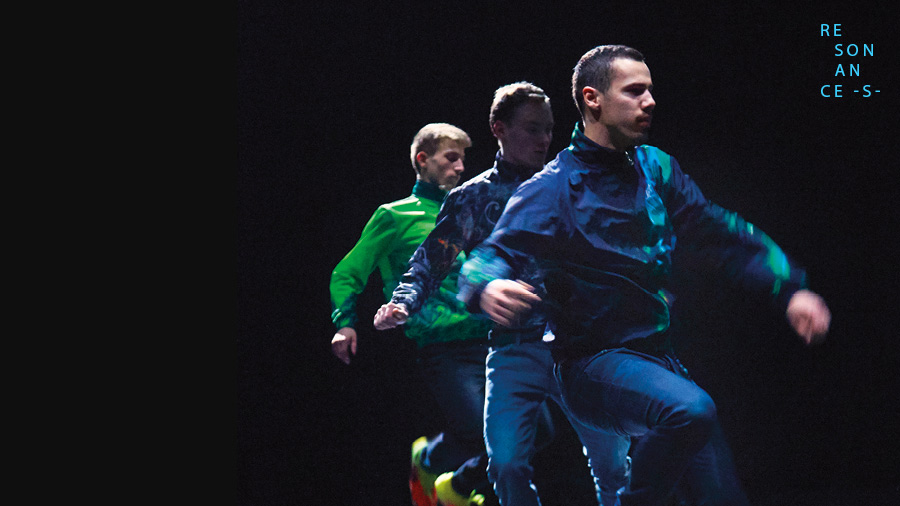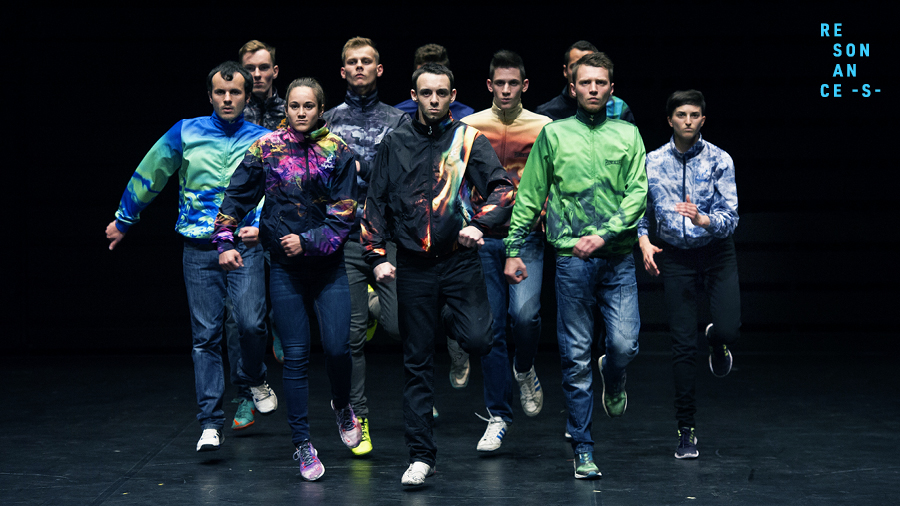 (LA)HORDE est un collectif de trois artistes, Marine Brutti, Jonathan Debrouwer, Arthur Harel, qui développent leur pratique à travers la mise en scène, la réalisation de films, l’installation vidéo, la création chorégraphique et la performance. Fondé en 2011, il oriente son champ d’action sur l’échange, le questionnement des codes artistiques et le fondement d’une culture « post-Internet » par la création d’univers instables et de fictions hypnotisantes. Jumpstyle, hakken, tekken : (LA)HORDE explore le monde fascinant des vidéos de hardstyle postées sur Internet pour en tirer une réflexion politique et esthétique. Novaciéries, à la croisée de la projection et de la performance dansée, entraîne le public dans un parcours surprenant où sont mis en scène et réinterprétés les différents aspects du jumpstyle, danse issue du mouvement de la techno hardcore et née dans la solitude de chambres d’ados belges à la fin des années 1990. Se distribuent dans la durée une performance chorégraphique en présence d’une chanteuse lyrique et la projection du film Novaciéries. Il en découle une errance qui nous fait osciller entre vision idéalisée et réalité pour dresser un portrait chorégraphié et métaphysique du monde post-industriel.